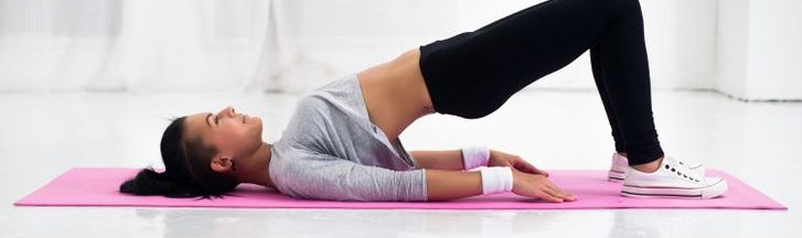 To ćwiczenie wymaga położenia się na plecach. Nogi należy zgiąć w kolanach, a stopy umieścić poniżej nich. Ręce układa się płasko, wzdłuż tułowia.