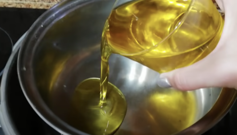 W rondlu umieść 1 filiżankę oleju roślinnego. Najlepszym wyborem jest oliwa z oliwek, ponieważ ma właściwości odżywcze i regenerujące.