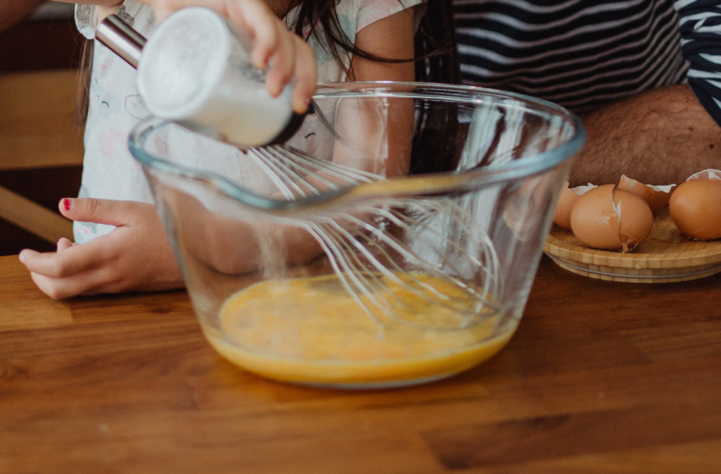 Oddzielamy żółtka od białek. Żółtka umieszczamy w misce razem z cukrem pudrem a następnie ubijamy.