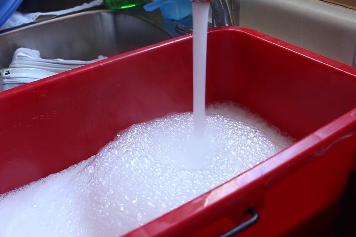 Najpierw napełnij zlew lub dużą miskę ciepłą wodą. Następnie dodaj trochę płynnego detergentu do wody. Zdejmij sznurowadła z trampek i umieść buty w wodzie. Nałóż pastę do zębów na jeden but. Drugi w tym czasie nich nasiąka wodą. Używając kolistych ruchów, zacznij wcierać pastę w pierwszy but po całej jego płaszczyźnie.