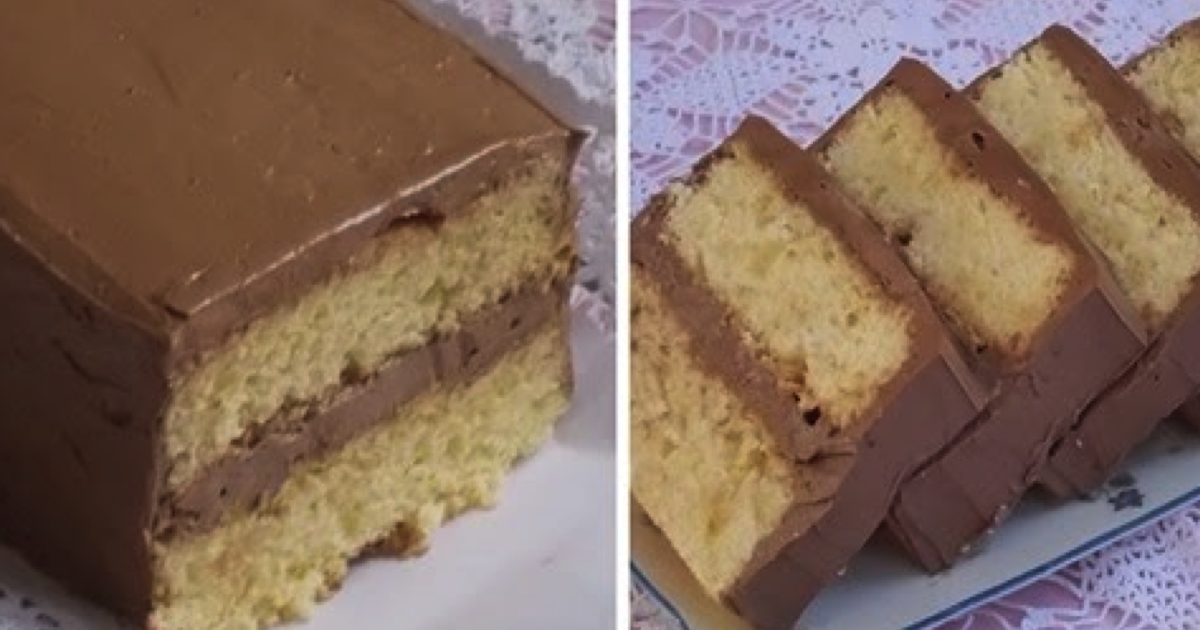 Bardzo prosty w przygotowaniu biszkopt nadziewany kremem czekoladowym: Moja babcia zawsze tak robiła – mój ulubiony deser.