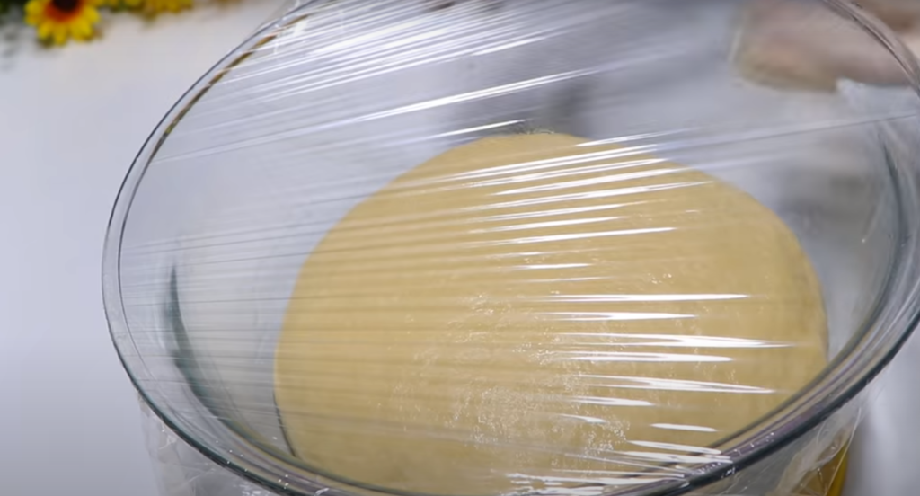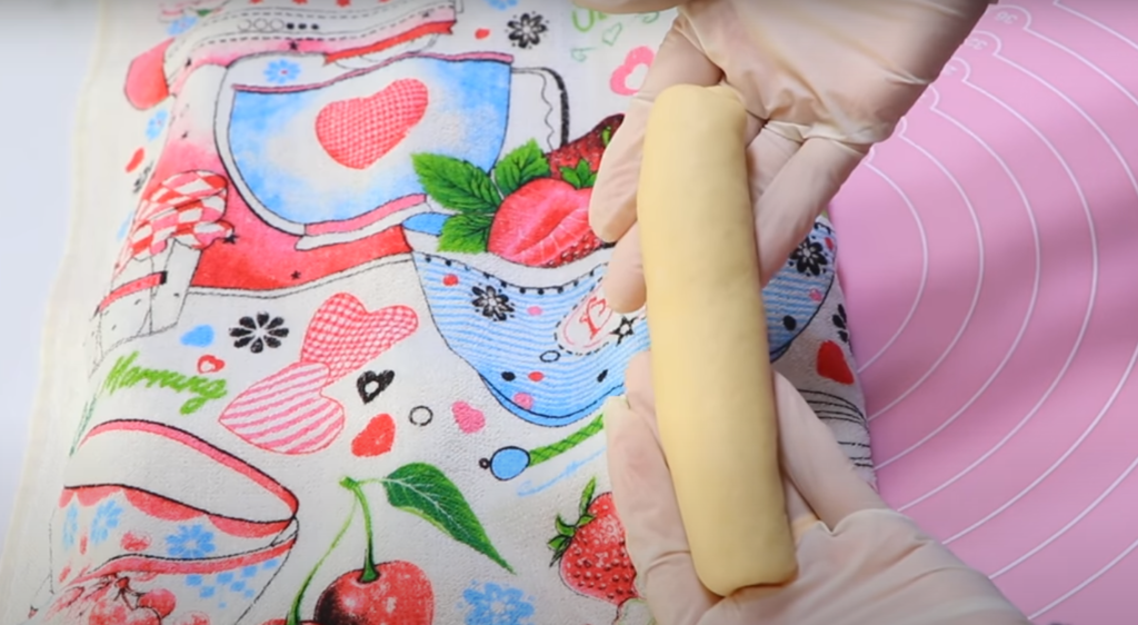 Podziel ciasto na 16 mniej więcej równych kawałków. Zroluj i odstaw ponownie w ciepłe miejsce przykryte bawełnianym ręcznikiem. Po upływie wymaganego czasu rozwałkuj wszystkie kulki i zwiń je w rulon.