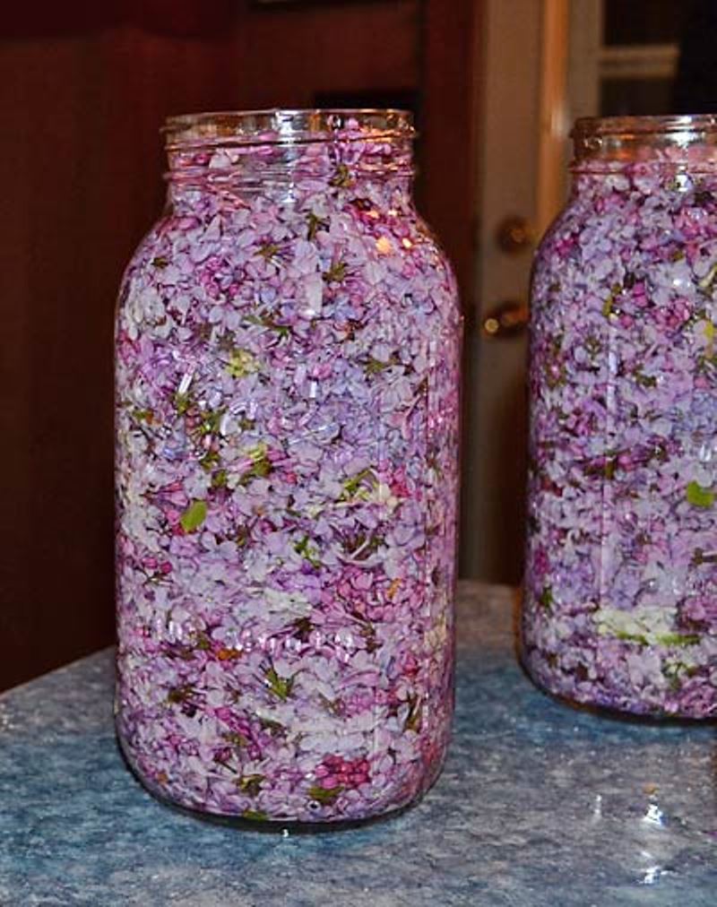 Olej przelej przez gazę, dobrze wyciskając płatki bzu. Ponownie podgrzej olej, dodaj świeżą porcję kwiatów i ponownie odstaw.