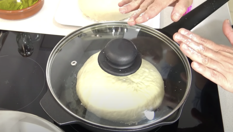 Po tym czasie przygotuj patelnię. Umieść jedną porcję ciasta w oleju. Przykryć i piec z drugiej strony przez 12-15 minut.