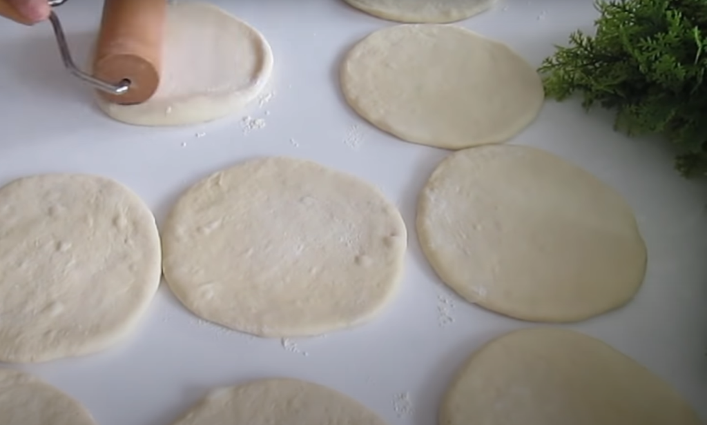 Każdy kawałek kładziemy na blasze i przykrywamy folią spożywczą lub woreczkiem mikrotenowym, aby ciasto nie wyschło. Poszczególne kulki wałkujemy na płasko o średnicy 10 – 12 cm.