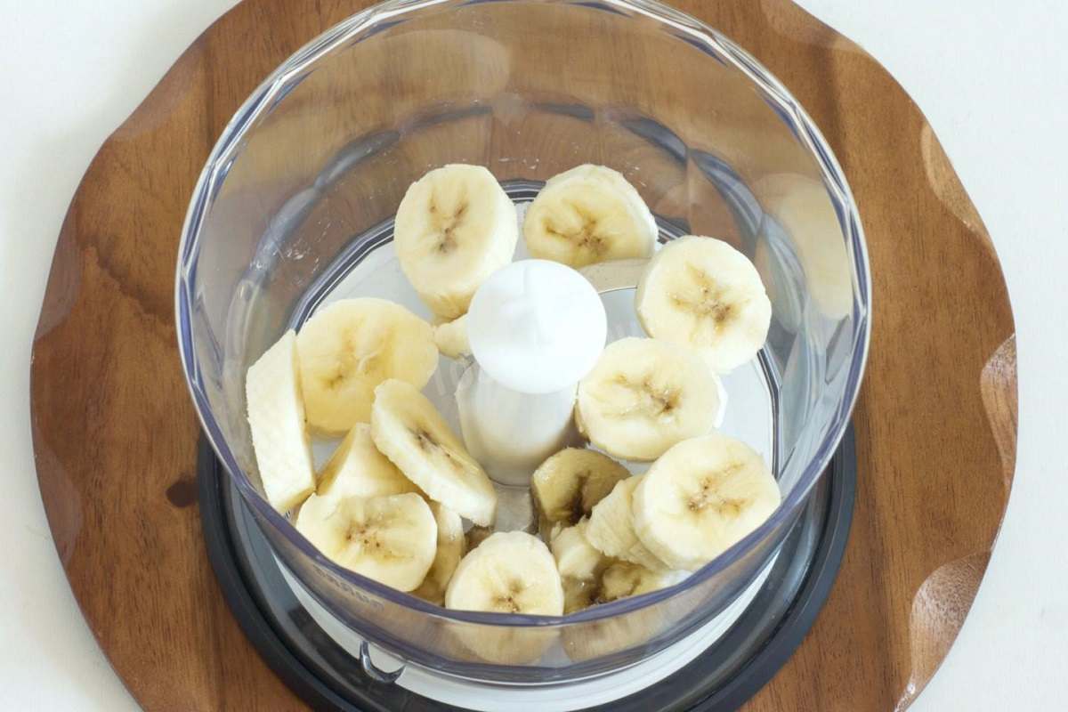 Ostudź ciasto, a następnie pokrój je na małe kawałki. Na koniec połączyć pokrojonego banana ze zblendowanym bananem.