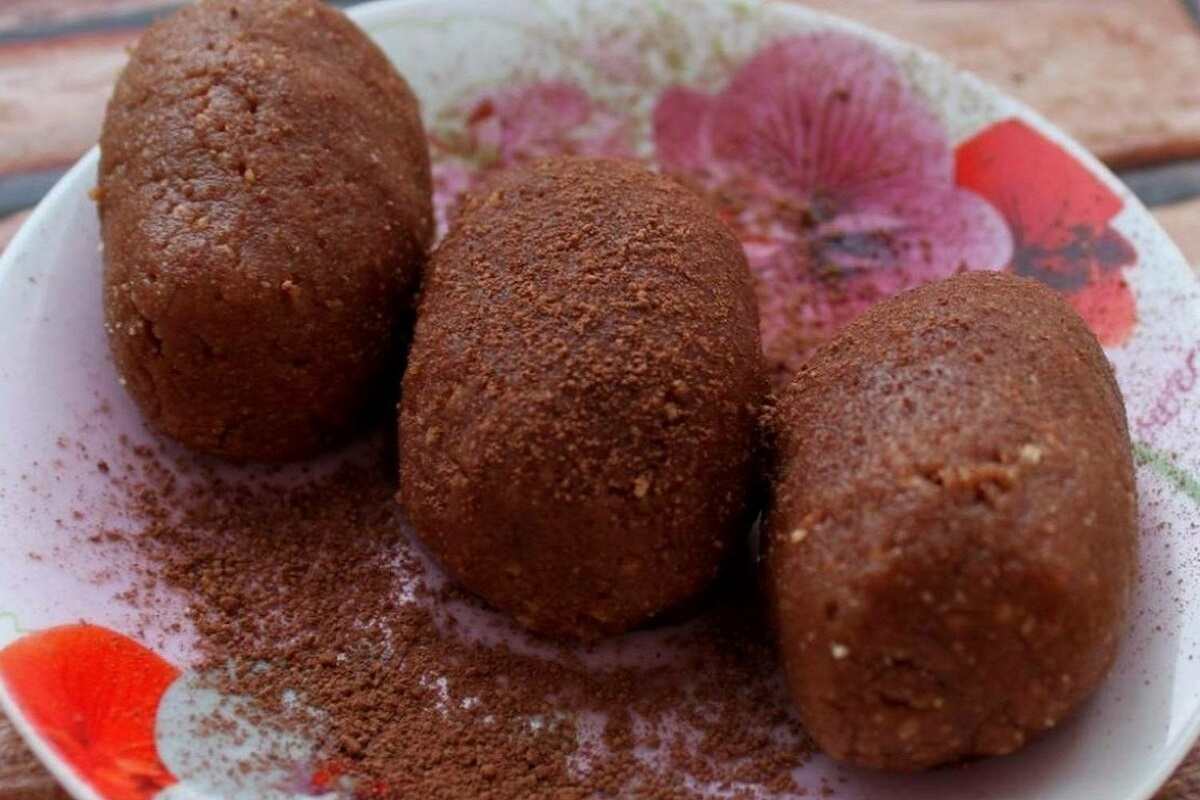 Masę należy uformować w małe kulki lub bryłki. Na koniec obtoczyć masę w kakao w proszku, a następnie oblać czekoladą.