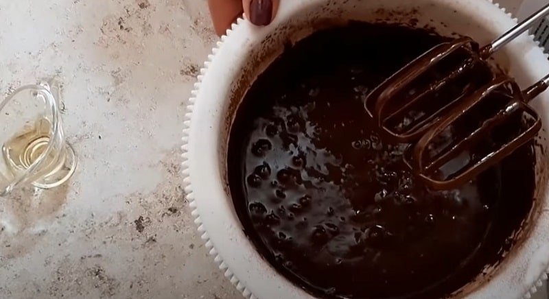 Czas na magiczną polewę! Wsyp cukier i kakao do rondla, dodaj wodę i masło. Gotuj przez 2 minuty, nie zapominając o ciągłym mieszaniu. Wyłącz ogień, dodaj olej roślinnego i dobrze wymieszaj.