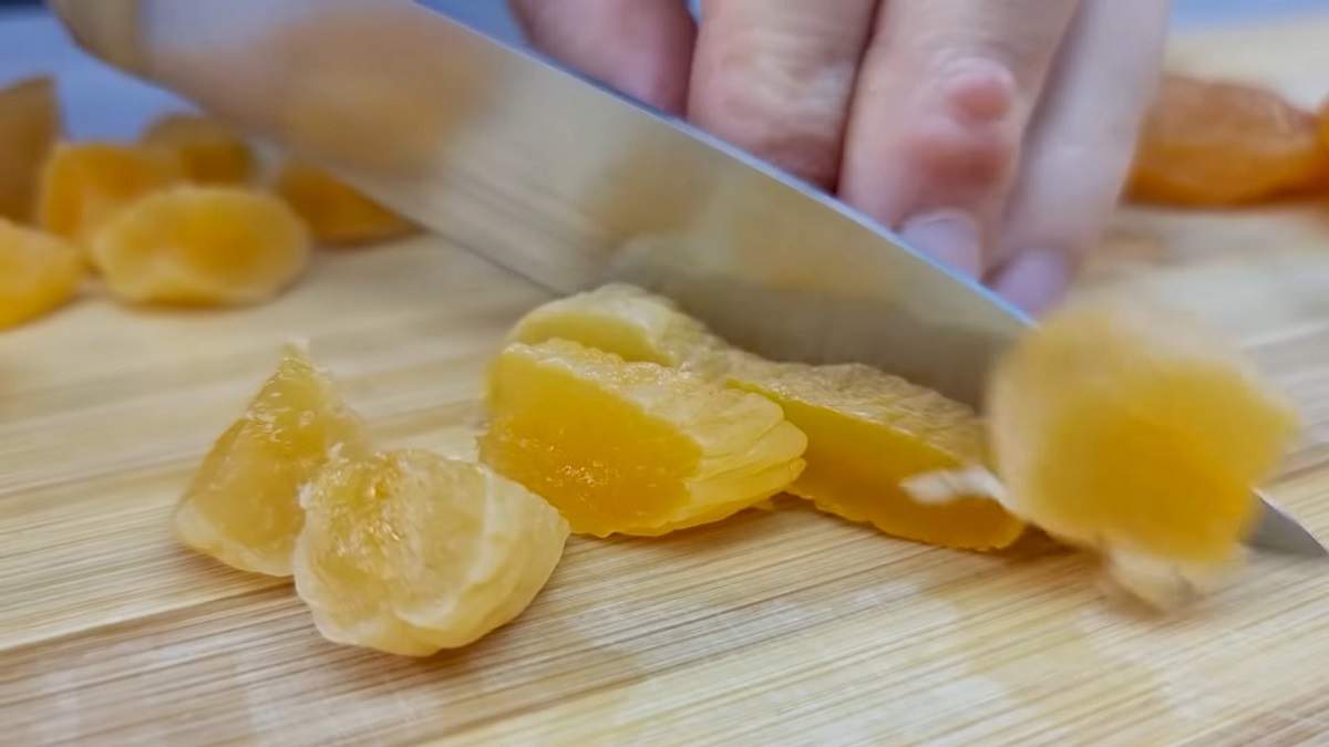 Suszone śliwki, suszone orzechy włoskie i suszone morele można pokroić na duże kawałki.