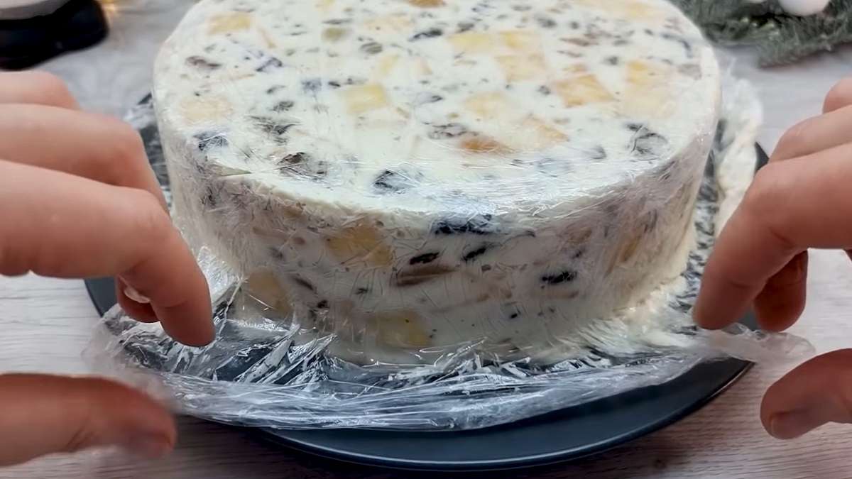 Mieszankę należy przechowywać w lodówce przez co najmniej jeden dzień. Po schłodzeniu przełożyć ją na talerz. Na koniec ostrożnie zdejmij folię z talerza.