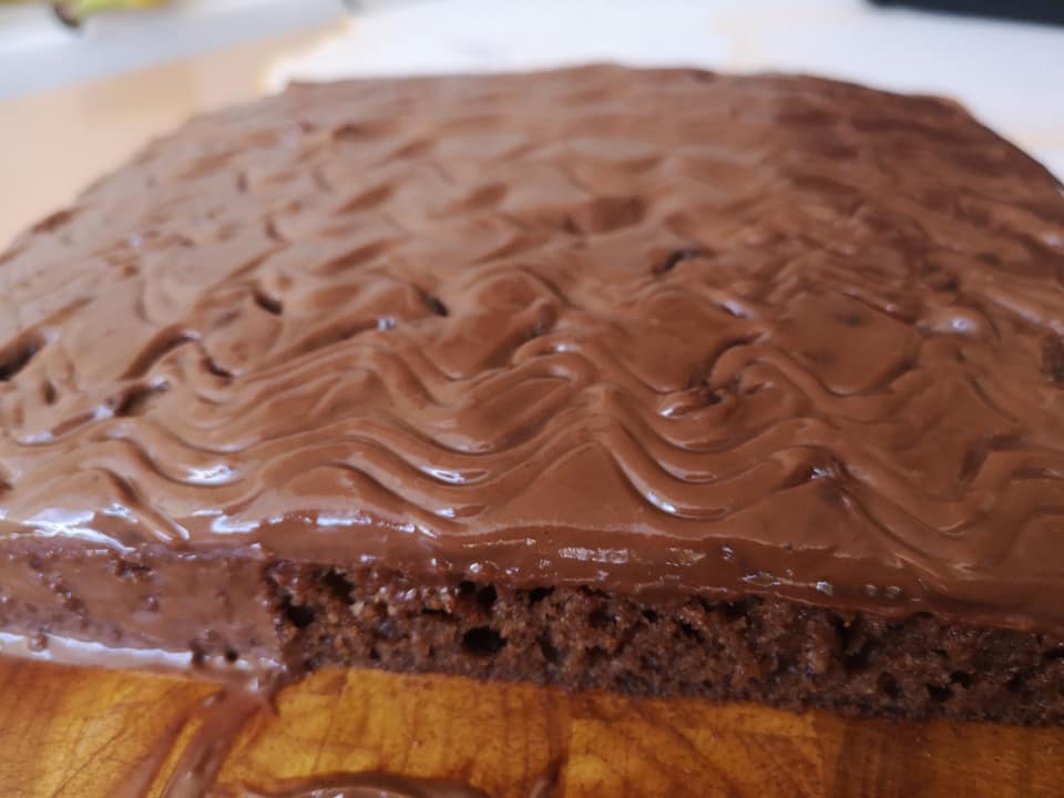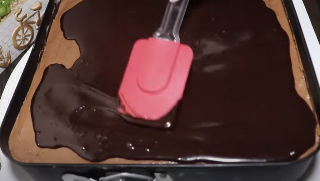 Wszystko wkładamy do piekarnika, który nastawiamy na temperaturę 180 stopni. Pieczemy przez trzy kwadranse. Ciasto wyjmujemy z piekarnika, polewamy kawą, która już ostygła i smarujemy konfiturą owocową. Bierzemy śmietankę i czekoladę i rozpuszczamy na ogniu, podgrzewając w garnku.