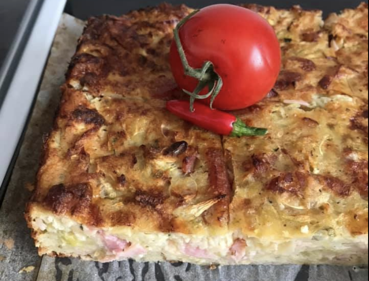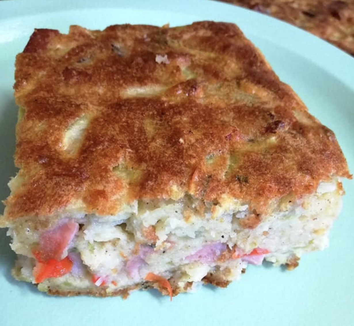 Świąteczne ciasto pikantne: 5 jajek, 5 łyżek śmietany, 5 łyżek mąki, kawałek szynki i masz pyszności.