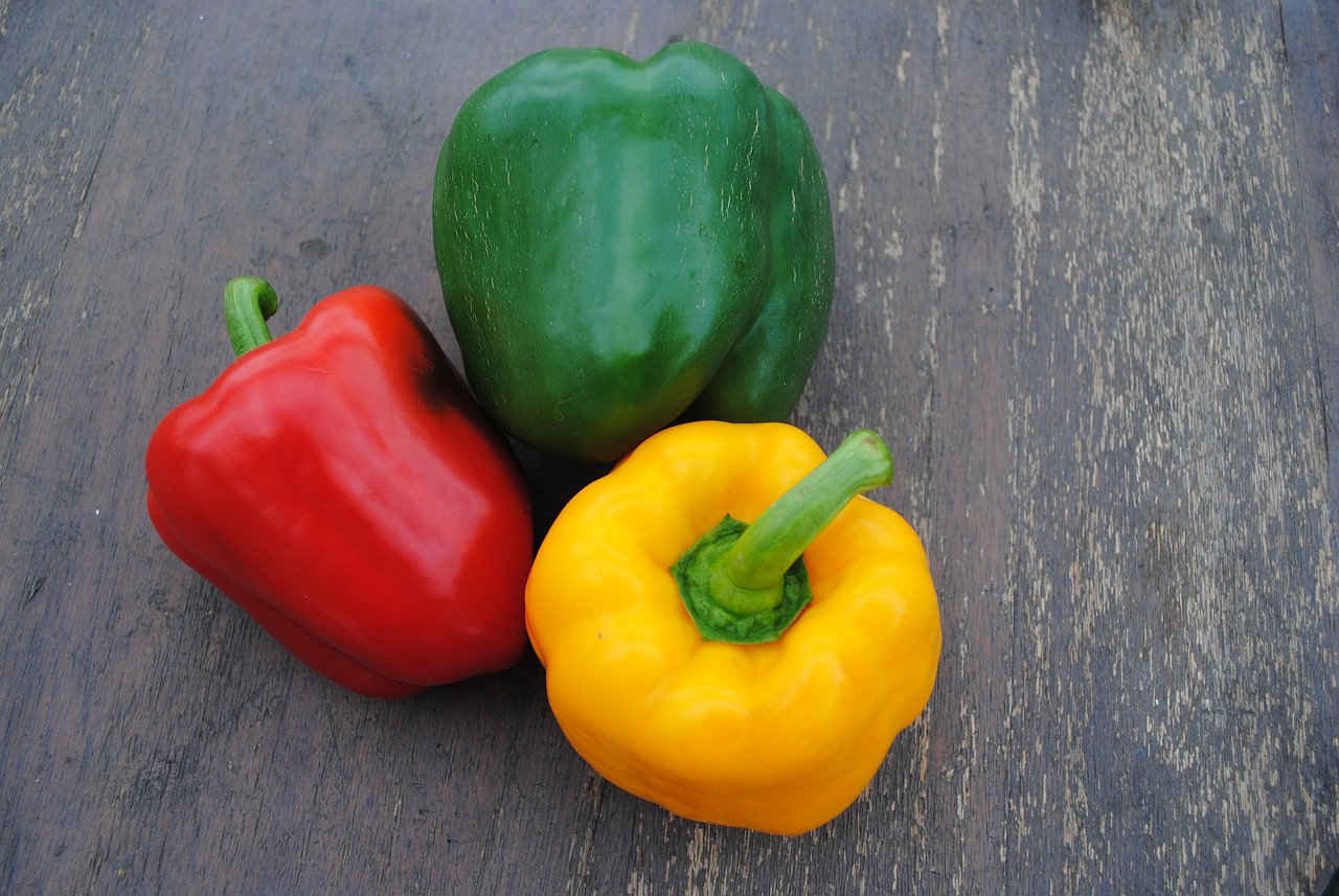 Mięso wymieszać z ciastem. Drobno posiekaj papryki. Dodaj je również do mieszanki.