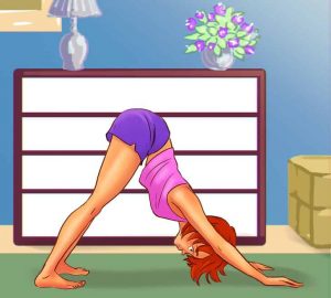 Czas wykonywania ćwiczenia: 2 razy po 30 sekund. Efekt: rozciągnięcie pleców i bioder, przekrwienie twarzy, usunięcie skurczów szyi, regeneracja komórek mózgowych, poprawa objawów cellulitu.
