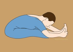 Stopy na szerokość barków, ręce na podłodze. Delikatnie pochyl się do przodu. Oddychaj i pozostań w tej pozycji przez 3-4 minuty.