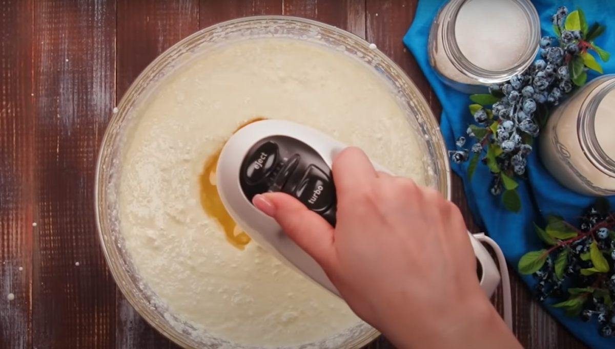 Twaróg przełóż do większej miski, dodaj cukier, budyń waniliowy, śmietanę i ubijaj mikserem do uzyskania gładkości. Następnie dodaj jajka i dokładnie ubij, aby uzyskać zwartą masę.