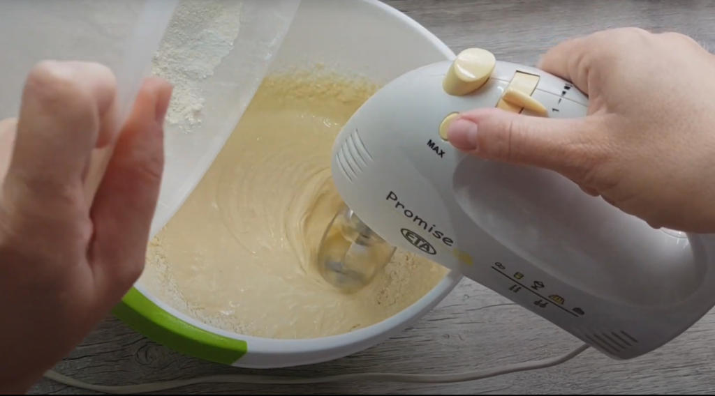 Na samym końcu do masy dodaj mąkę pszenną i wszystko dobrze wymieszaj.