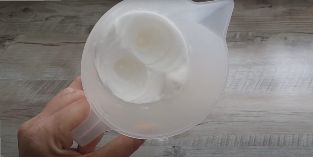 Rozbij jajka i oddziel białka od żółtek. Białka wlej do głębokiej miski i ubij przy pomocy miksera.