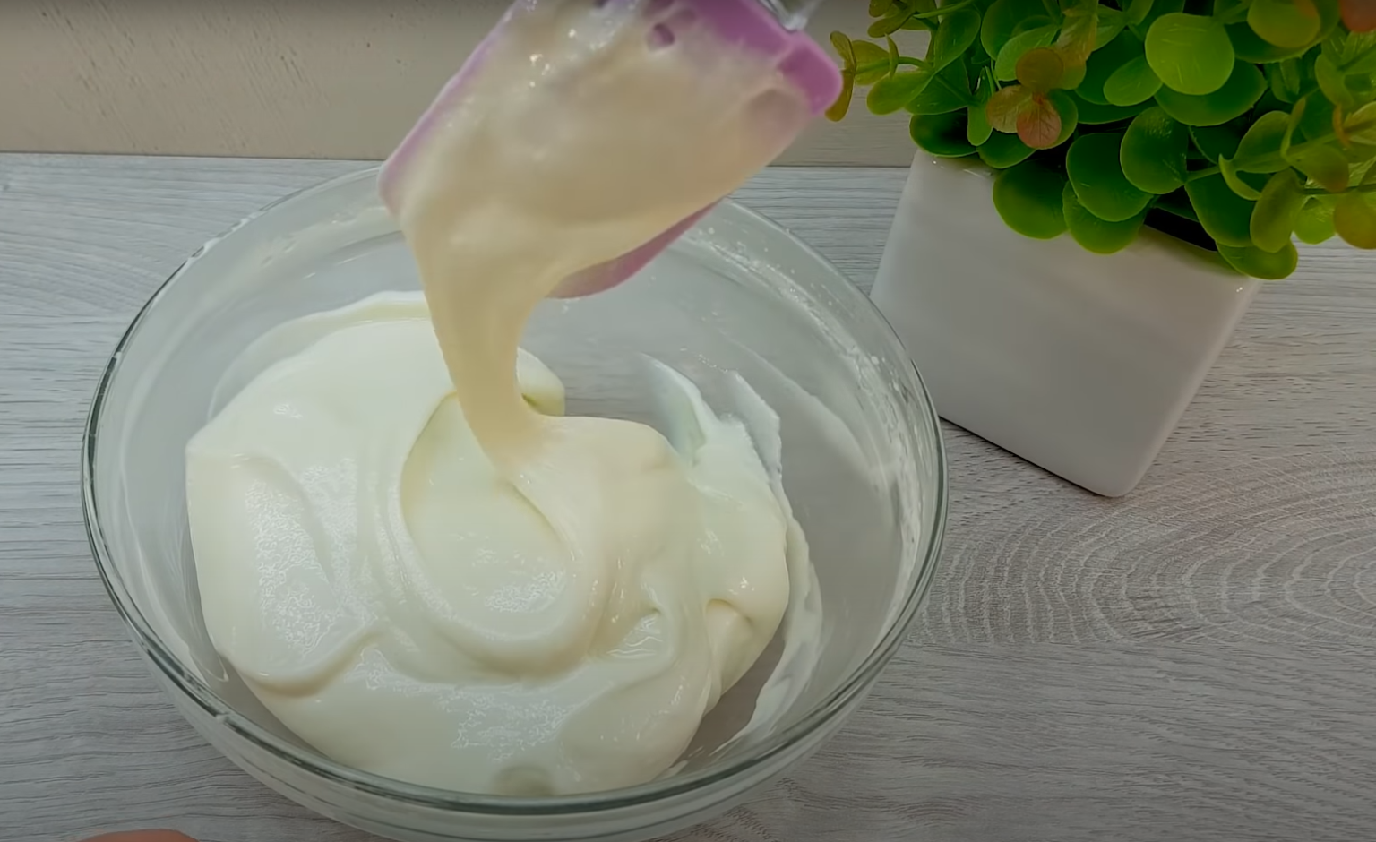 Teraz dokładnie ubij te dwa składniki za pomocą miksera. Włóż do lodówki na 15 minut, aby trochę zgęstniał.