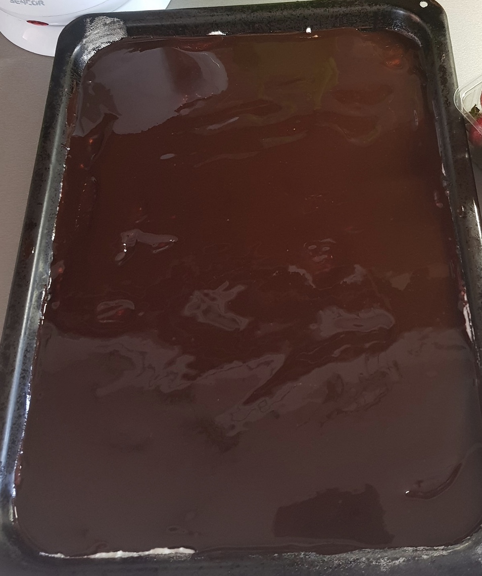 Pozwól ciastu ostygnąć przed dodaniem polewy. Smacznego.