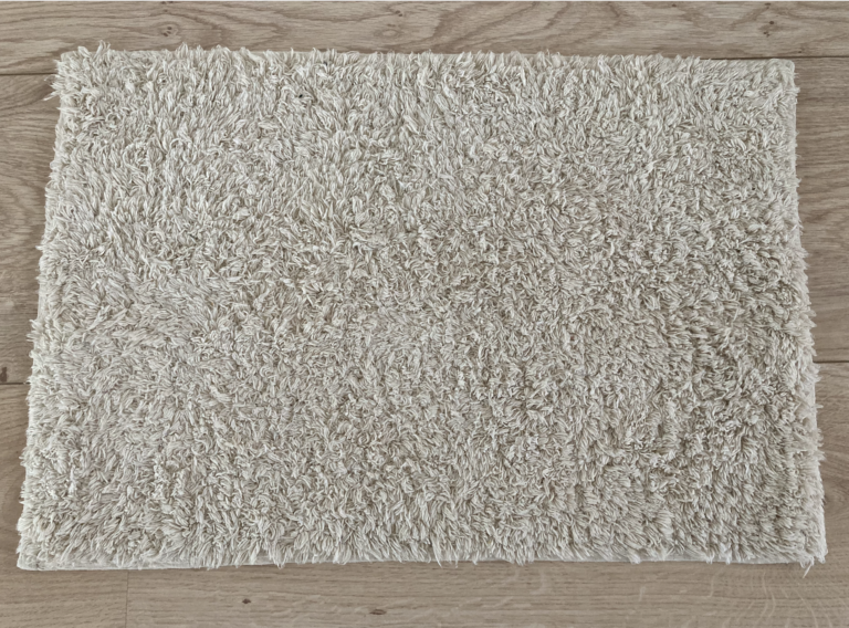 Najpierw jak zwykle odkurzam dywany. Na niecały litr wody daje dwie łyżki soli i łyżkę płynu do płukania tkanin. Namaczam w roztworze ściereczkę z mikrofibry i po prostu „przeczesuję” nią cały dywan (nie szoruję szczególnie mocno) dywan wyczyszczony w 10 minut w kuchni i salonie. Rezultat?