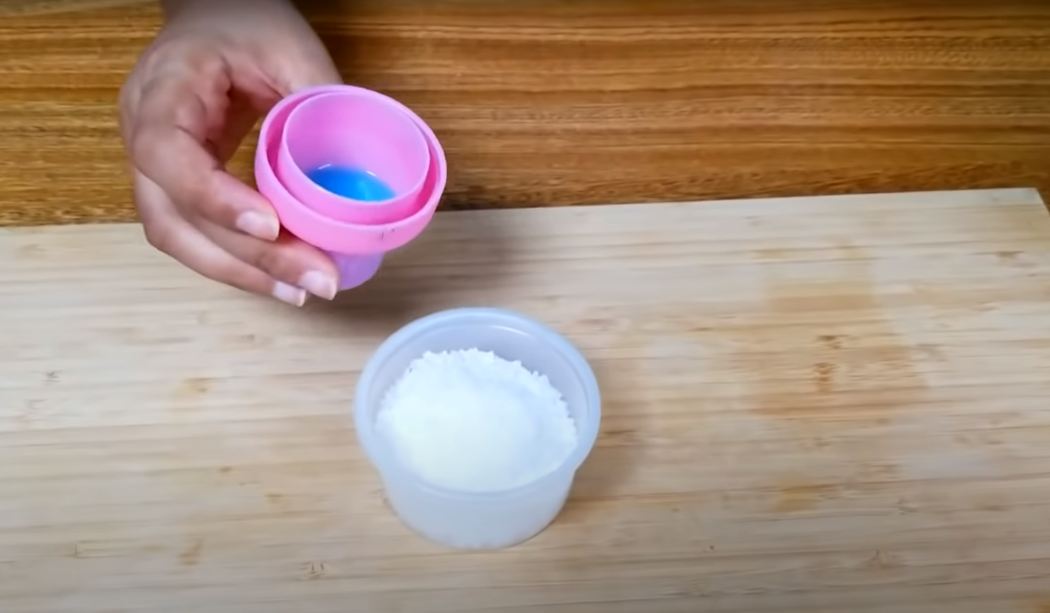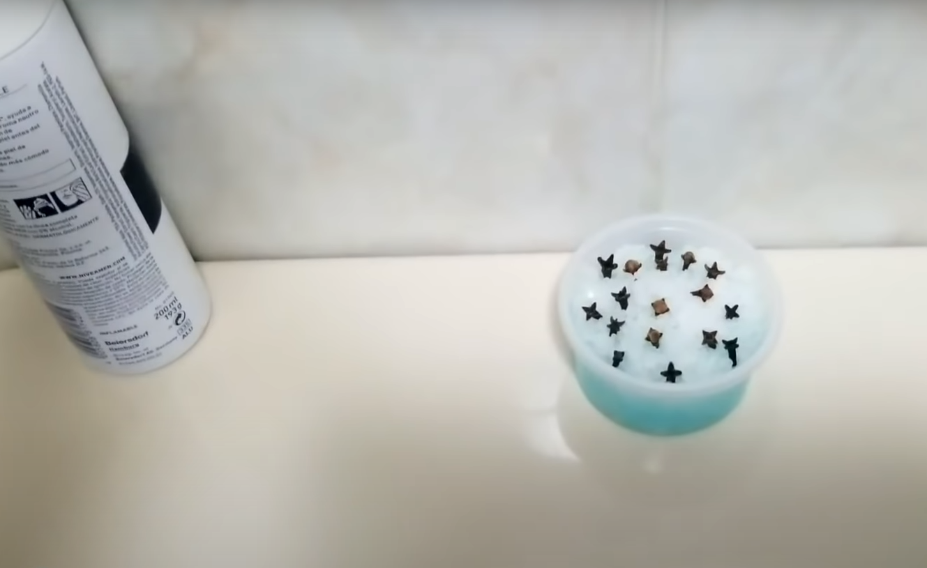 Wsyp sól do miski, wlej łyżkę alkoholu i dodaj płyn do płukania tkanin, wymieszaj. Wbij 15 goździków w przykrywkę.