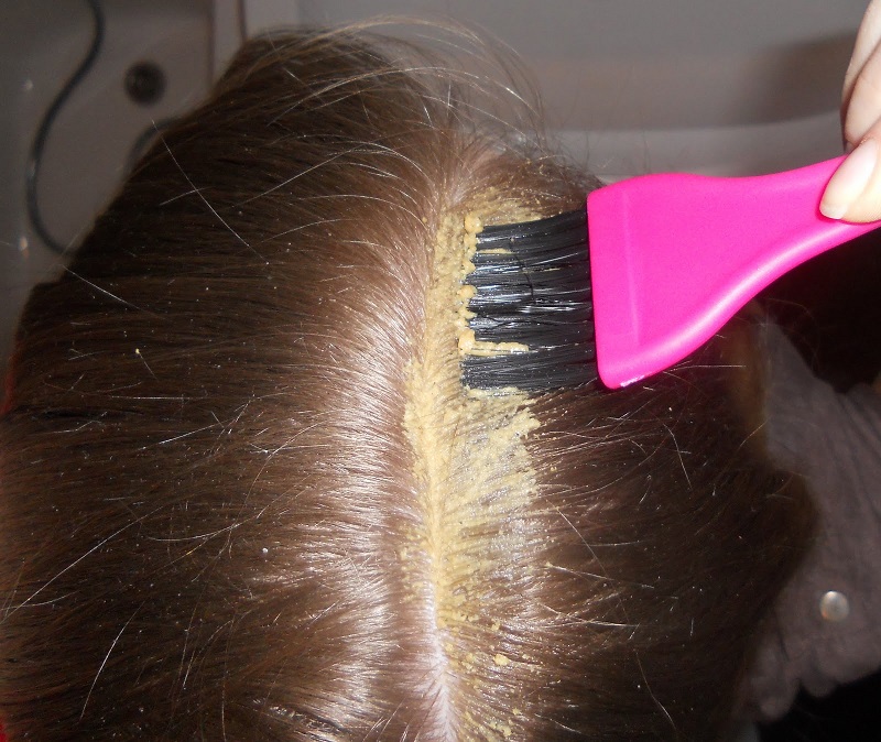 Gotową maseczkę naskładamy stopniowo, dzieląc włosy na pasma.