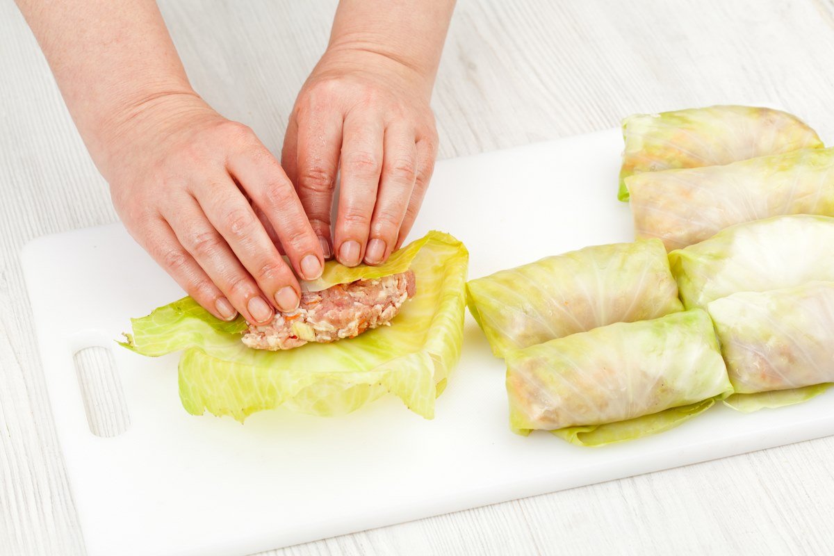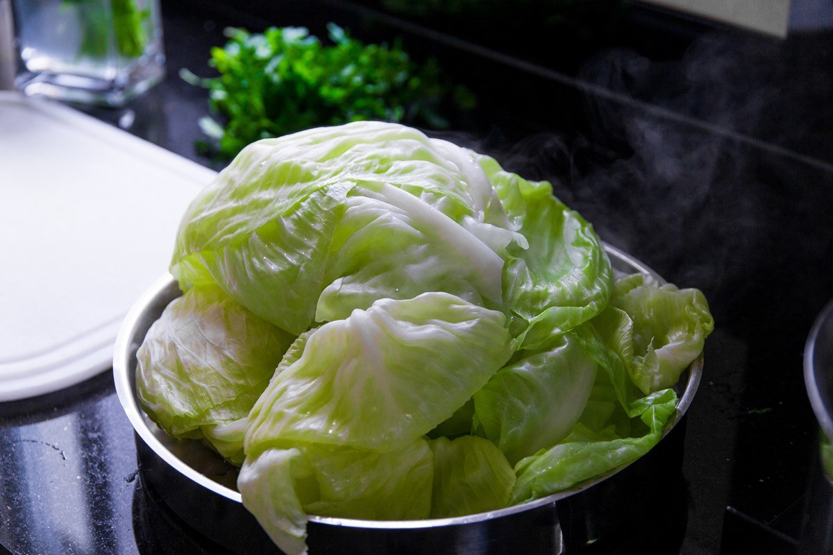 Na początku zajmij się kapustą. Umyj ją i odetnij łodygę po czym usuń wierzchnie liście. Tak przygotowaną kapustę włóż do garnka z wrzącą wodą. Gdy liście kapusty będą już miękkie wyciągnij je z garnka i pozostaw do ostygnięcia.