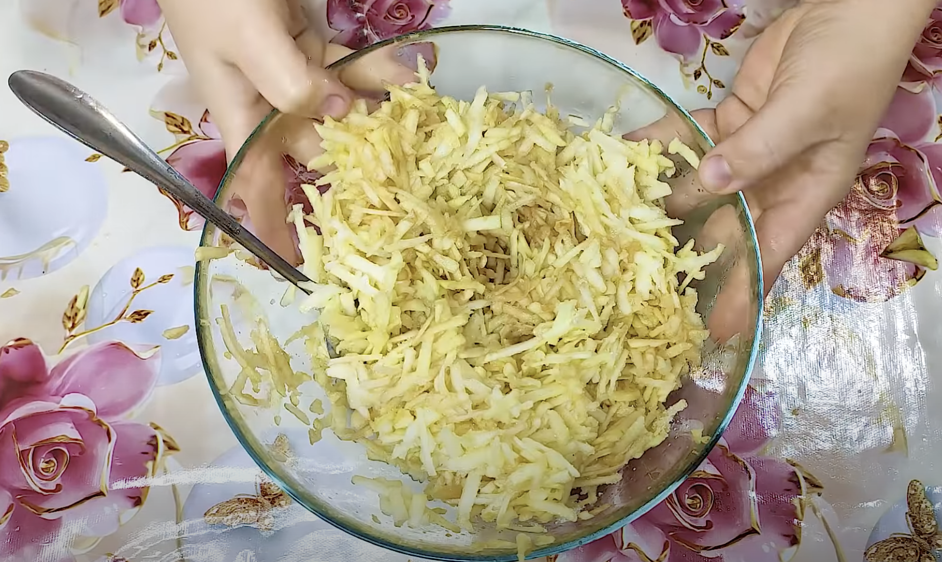 Najsmaczniejszy przepis na ciasto z jabłek: Kładę 4 starte jabłka, zalewam ciastem, zwijam. Robię je co tydzień