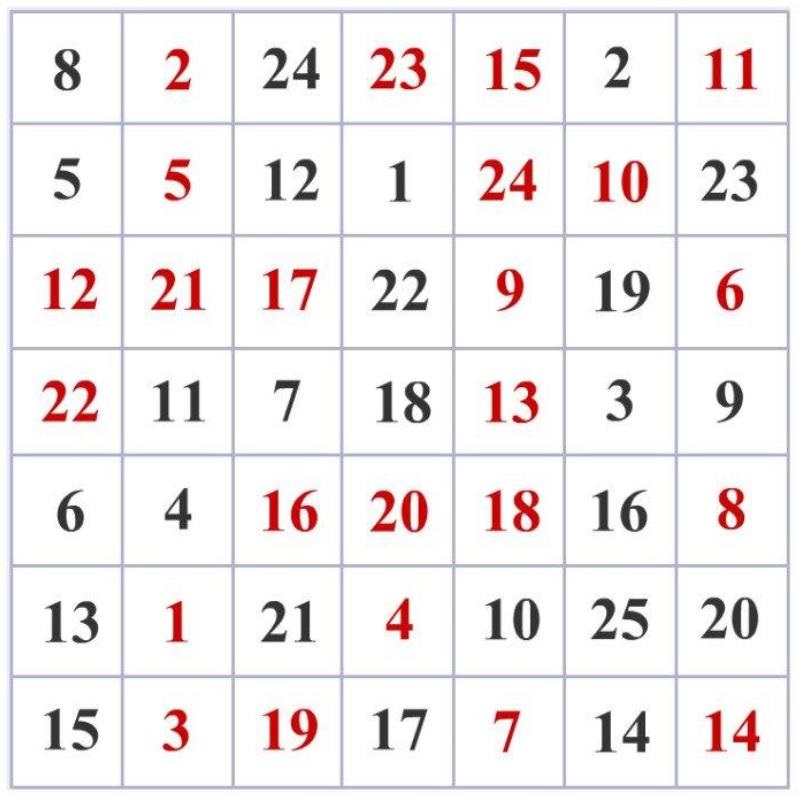 Jak najszybciej znajdź liczby od 1 do 25, wymawiając je na głos. Pamiętaj, żeby nie odwracać wzroku od środka stołu i używał wyłącznie widzenia peryferyjnego. Celem jest znalezienie wszystkich liczb w 10 sekund! Powodzenia!