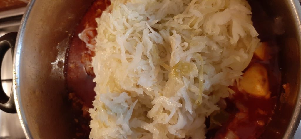 • 1 kg kiszonej kapusty – pokroić na mniejsze kawałki