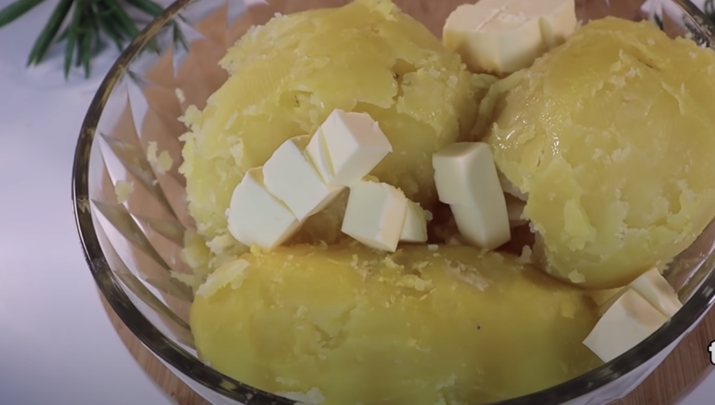Ugotowane ziemniaki wymieszać razem z masłem i startym serem.