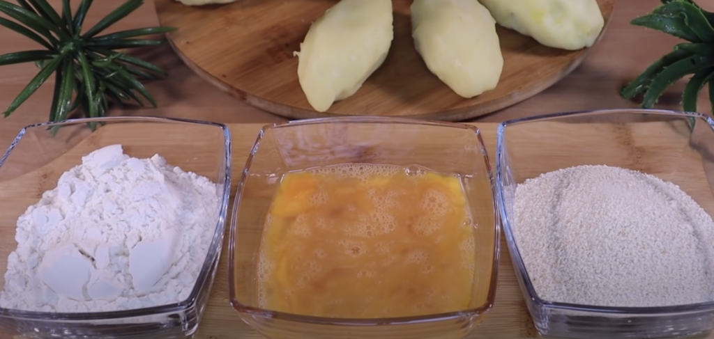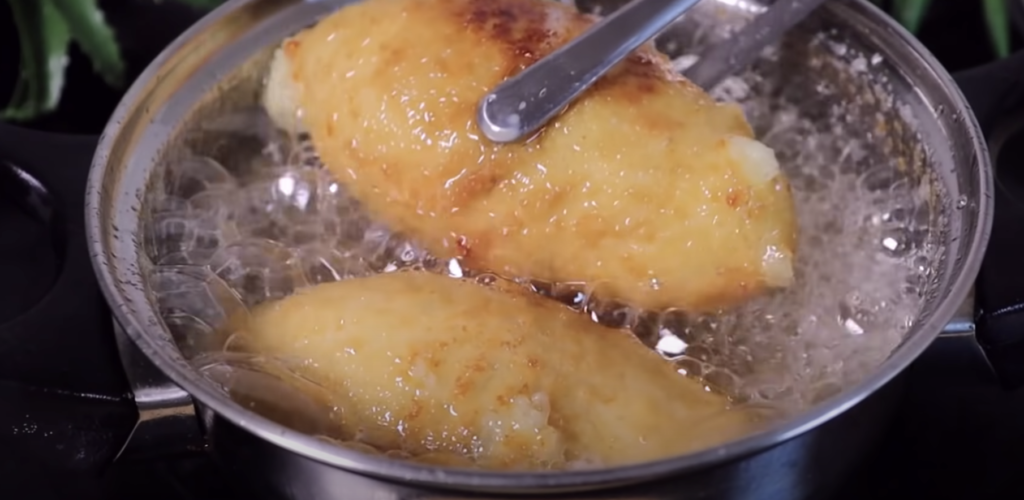Najpierw obtaczamy w mące, później w jajku, a na końcu w bułce tartej. Smażyć w odpowiedniej ilości oleju na złoty kolor.