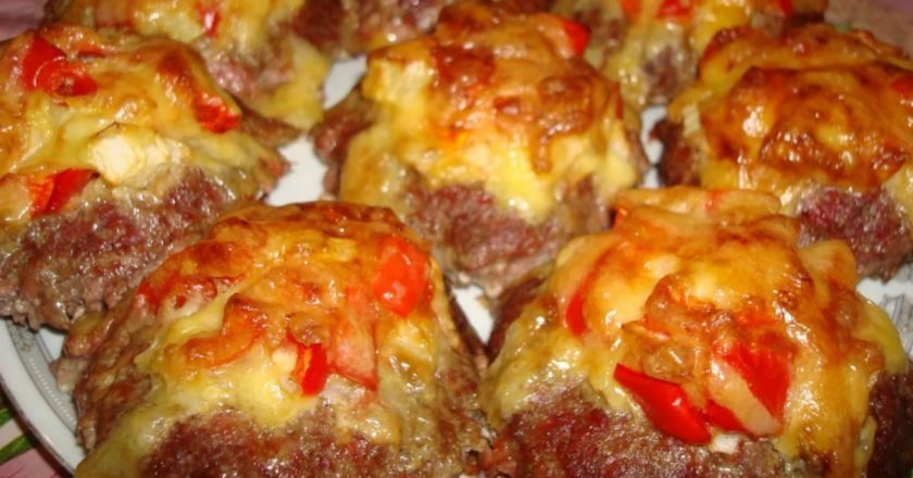 Pokrój pomidory i pozostałą cebulę w plastry. Na kotletach układaj najpierw krążki cebuli, potem pomidora. Kotlety posyp startym serem i zapiekaj w piekarniku przez 30 minut w 180 stopniach.