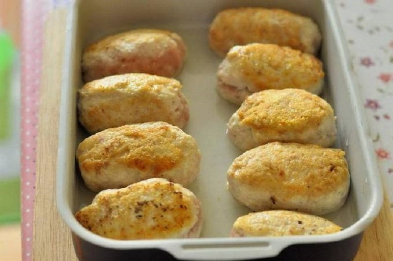 Jeśli w domu nie ma białego chleba, możesz zastąpić go grzankami, pieczywem chrupkim lub krakersami. Godną alternatywą dla mąki do panierowania będzie kasza manna lub bułka tarta. Aby uzyskać miękkość przyszłych kotletów, dodaj do mielonego mięsa kilka łyżek oleju roślinnego. Aby kotlety były szczególnie soczyste, wlej 100 mililitrów wody na blachę do pieczenia w środku pieczenia.