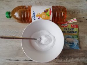 Przygotowanie: Aby oczyścić pozostałą część kuchenki, również można użyć sody oczyszczonej, octu i wody, ale sposób czyszczenia jest inny. Zacznij od wymieszania sody oczyszczonej z gorącą wodą, a następnie namocz gąbkę w tej mieszance i użyj jej do wyczyszczenia kuchenki.