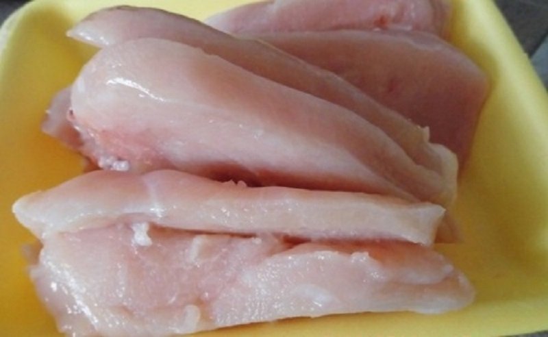Filet należy umyć i osuszyć papierowym ręcznikiem, następnie pokroić mięso na mniejsze kotlety.