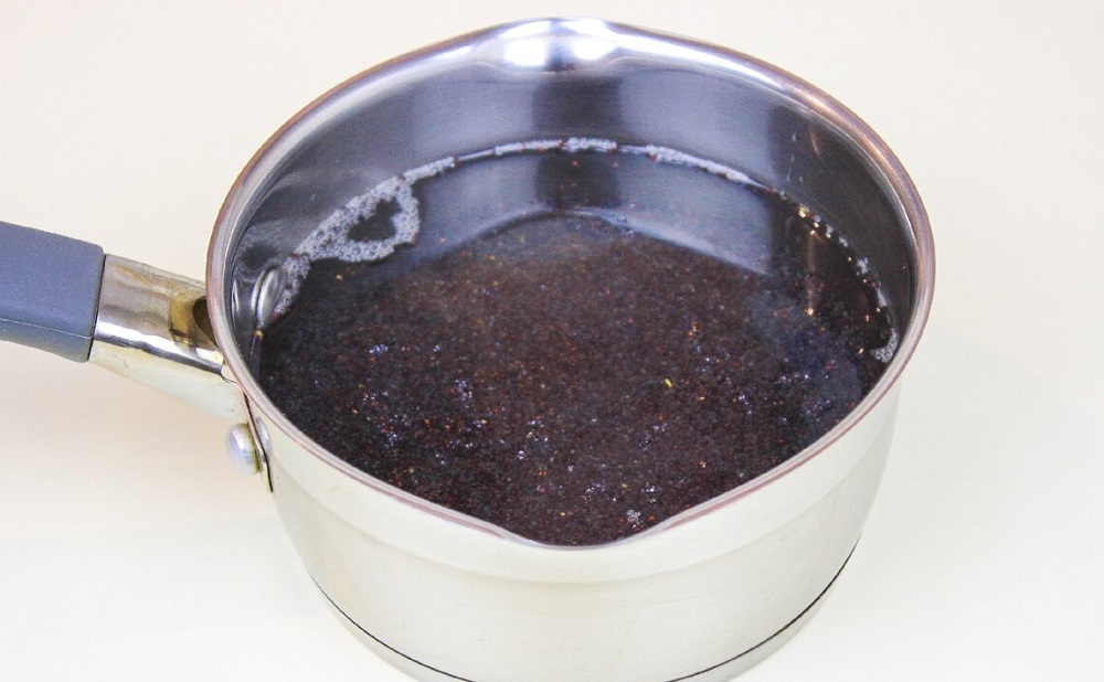 Kiedy ciasto będzie rosło, należy przygotować masę makową. Mak wsyp do garnka i zalej wrzątkiem do około 2-3 cm nad mak, a następnie odstaw na około 30- 60 minut do wystygnięcia. Po ostudzeniu, odlej nadmiar wody i zmiksuj mak blenderem.