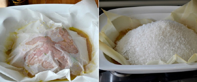 Umyte mięso wytrzyj ręcznikiem papierowym i umieść w przygotowanej wcześniej marynacie na około dwie godziny. Jeśli masz więcej czasu to pozostaw mięso w marynacie na dłużej. Do wysokiej formy do pieczenia włóż mięso i wlej do niego marynatę. Mięso musisz przykryć pergaminem.