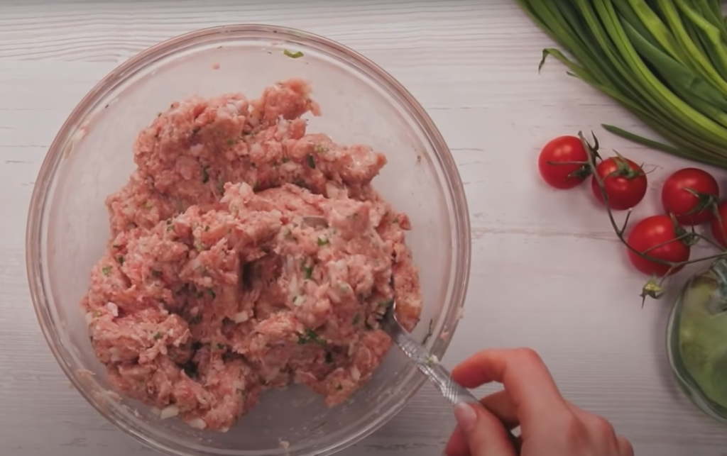 Folię lekko natrzeć olejem. Włóż mięso mielone do miski (mogą być dwa rodzaje). Dodaj olej i drobno posiekaną cebulę. Dodajemy również bułkę tartą, czarny pieprz, bazylię, sól, posiekaną pietruszkę. Na koniec dodaj majonez. Wszystko dobrze miksujemy.