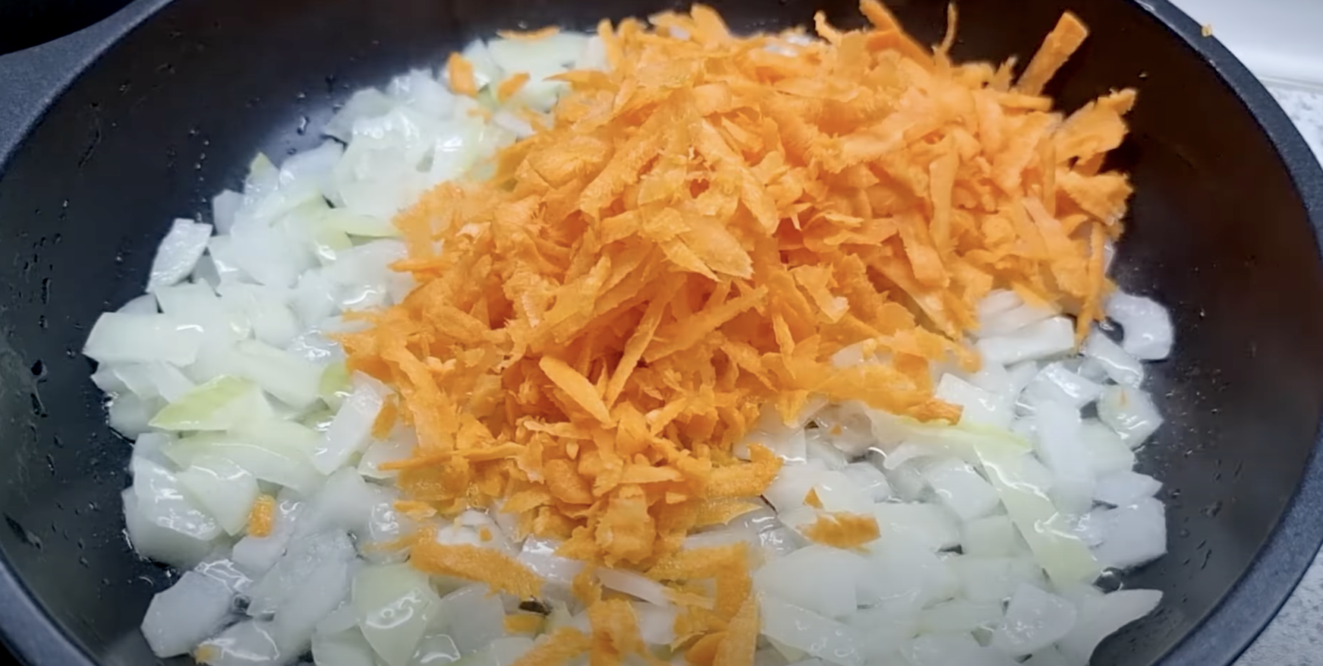 Przygotowanie sosu: Zetrzeć marchewkę na grubej tarce. Drobno posiekaj cebulę, a następnie podsmaż ją na patelni.