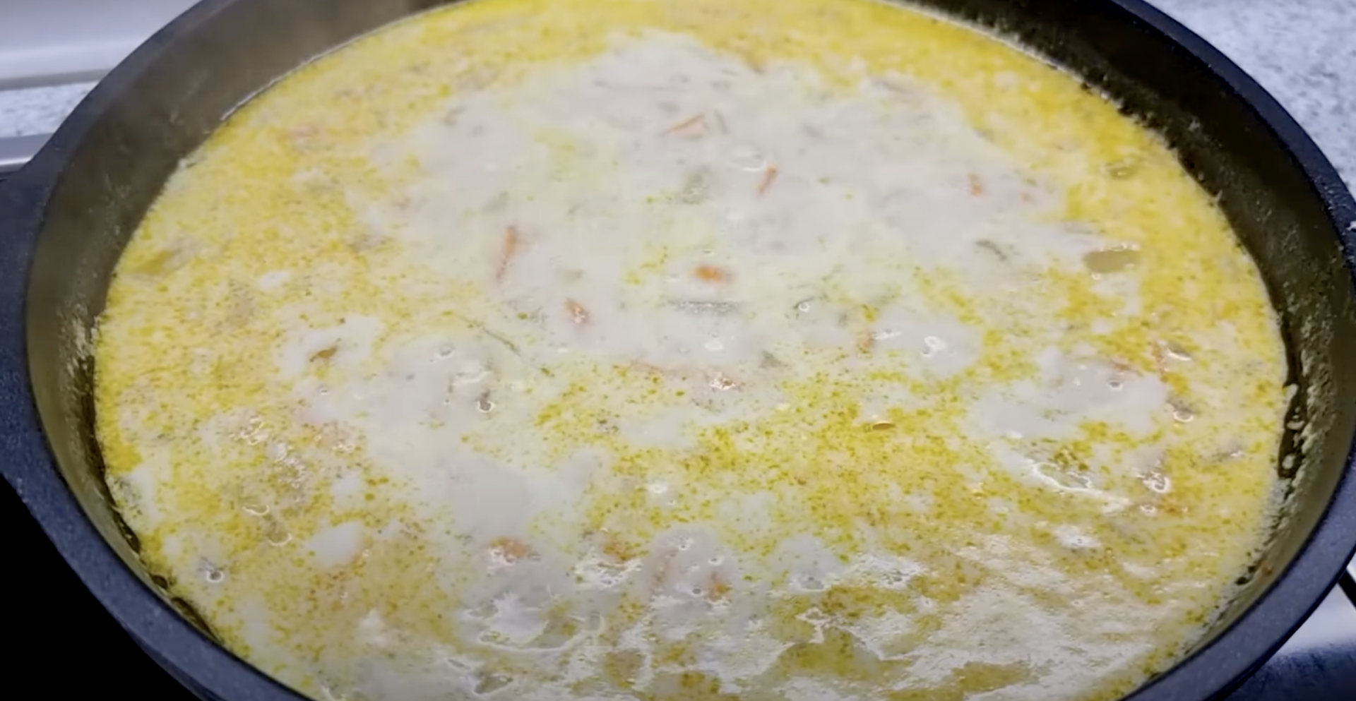 Po dodaniu marchewki do podsmażonej cebuli dodać czosnek. Na koniec wlać śmietanę i wodę.