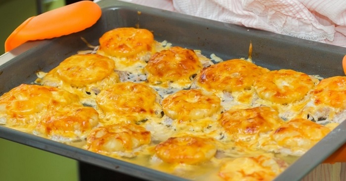 Można je zrobić przy pomocy formy. Pamiętaj, aby pomiędzy stekami były odstępy. Na wierzch każdego z nich nałóż trochę smażonej cebuli, potem jajko z majonezem, a następnie starte ziemniaki.