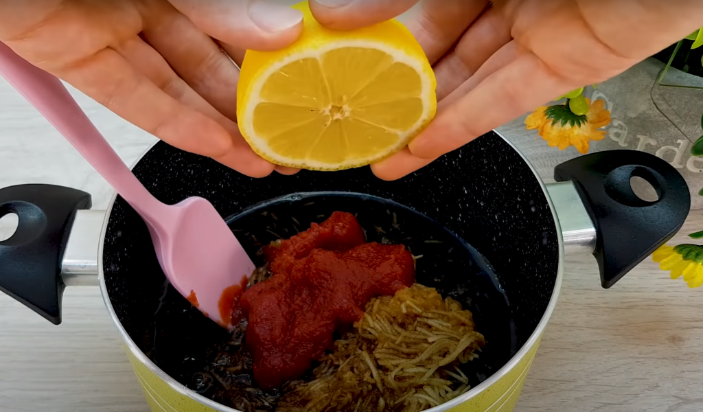 W trakcie pieczenia przygotuj marynatę. Jabłko starte na tarce z dużymi oczkami wymieszaj z koncentratem pomidorowym, sokiem z cytryny oraz sosem pomidorowym. Następnie dodaj przyprawy sypkie i wymieszaj. Marynatę zagotuj, do momentu w którym utworzy się gładka masa.
