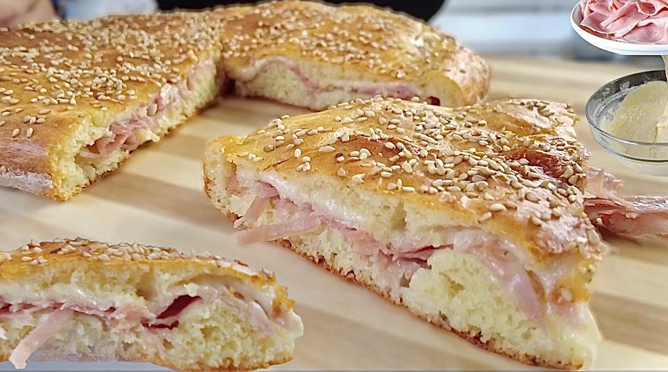 Niezwykle uzależniający: Faszerowany włoski naleśnik z chleba z szynką i serem.