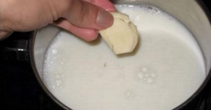 - Wlej wodę i mleko do garnka, dodaj czosnek i gotuj na małym ogniu.