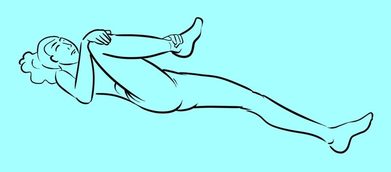 Połóż stopy płasko na twardej, równej powierzchni, np. na ziemi. Możesz zgiąć kolano i przytrzymać nogę rękami. Następnie skieruj łokieć w stronę klatki piersiowej. Tę pozycję należy utrzymać przez 30 sekund. Następnie należy powrócić stopą do pozycji wyjściowej. Aby ćwiczenie było skuteczne, należy je powtórzyć jeszcze dwa razy.