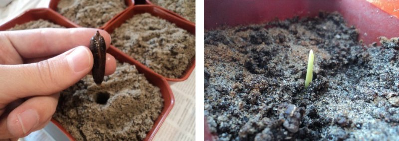 Do sadzenia wybierz pojemnik z otworami. Wsyp warstwę dowolnego drenażu i podłoża gruntowego zmieszanego w równych częściach piasku i torfu. Namoczone nasiona posadź pionowo w ziemi, niezbyt głęboko, około 1,5 cm pod nią. Umieść pojemnik w dowolnym ciepłym miejscu. Nie zapomnij go podlać.