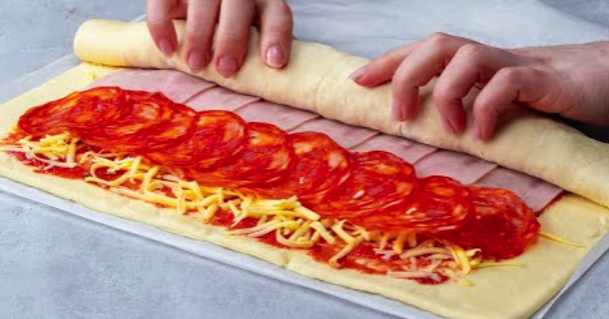 Szybka pyszna kolacja gotowa: Zawiń ser, szynkę, salami lub inne ulubione dodatki i do piekarnika.