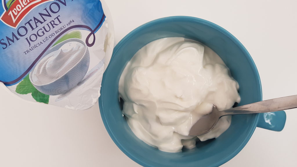 Blachę wstawić do nagrzanego piekarnika i piec 25 minut w temperaturze 200°C. Przygotuj sos: dodaj jogurt do małej miski.
